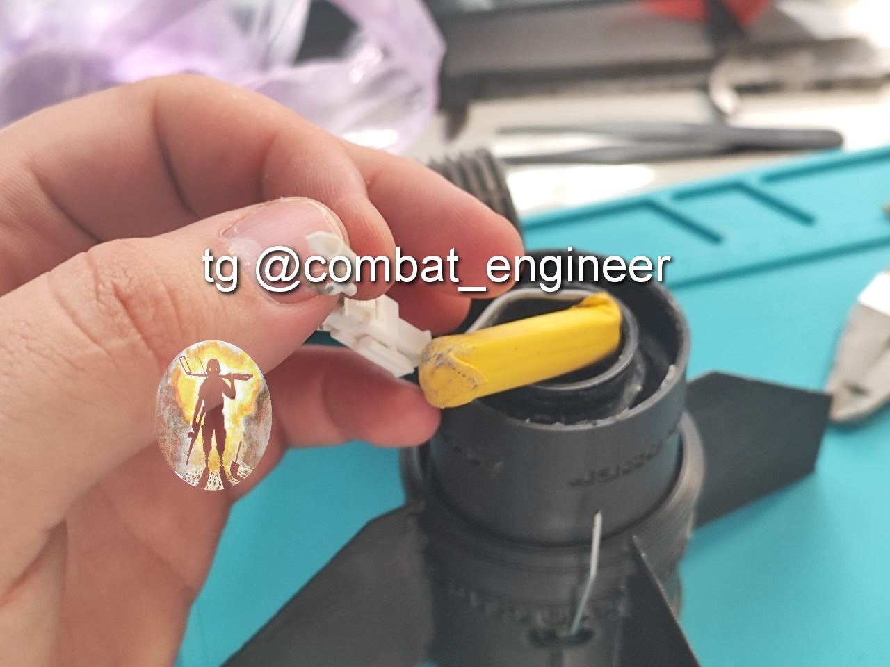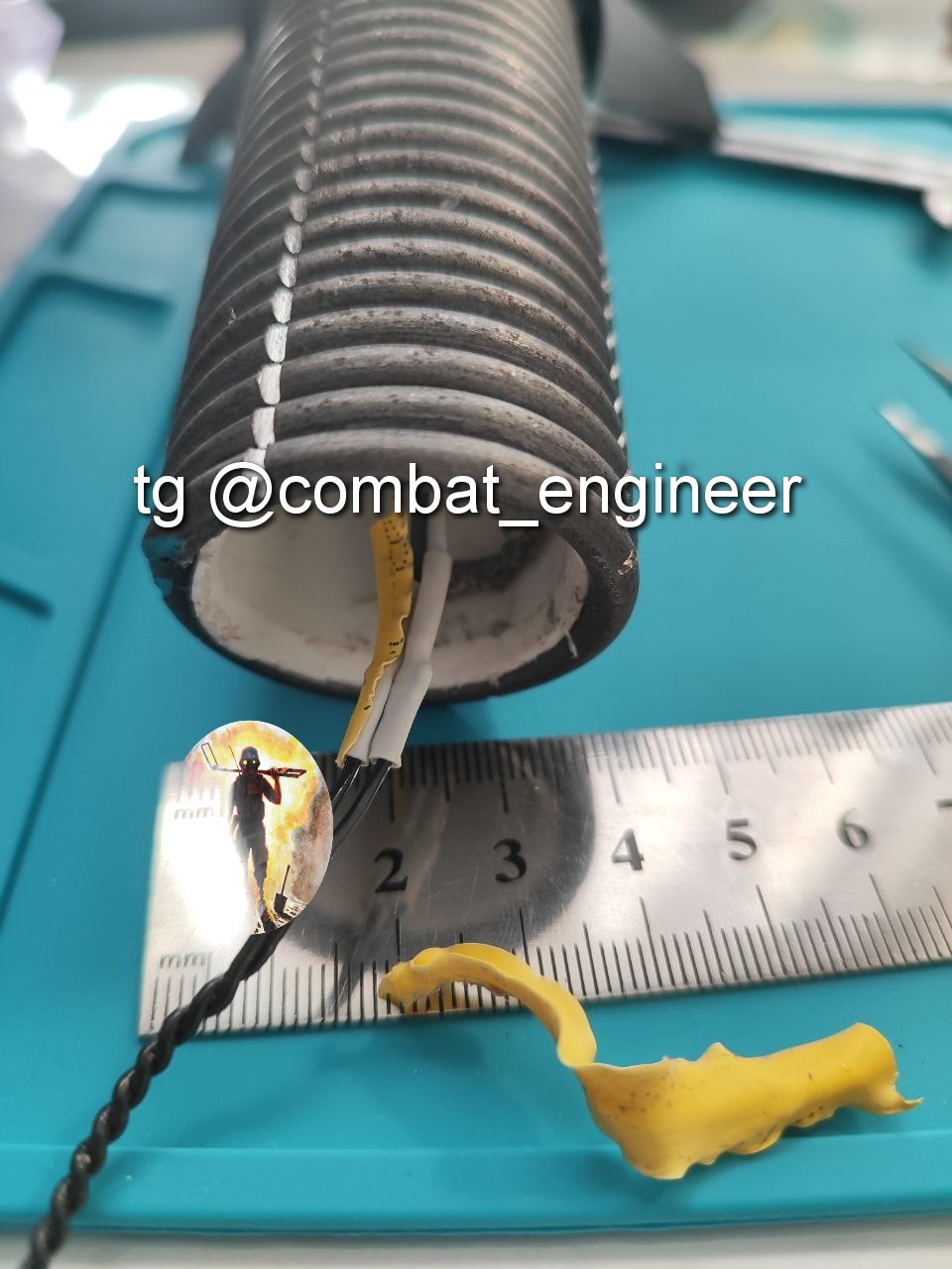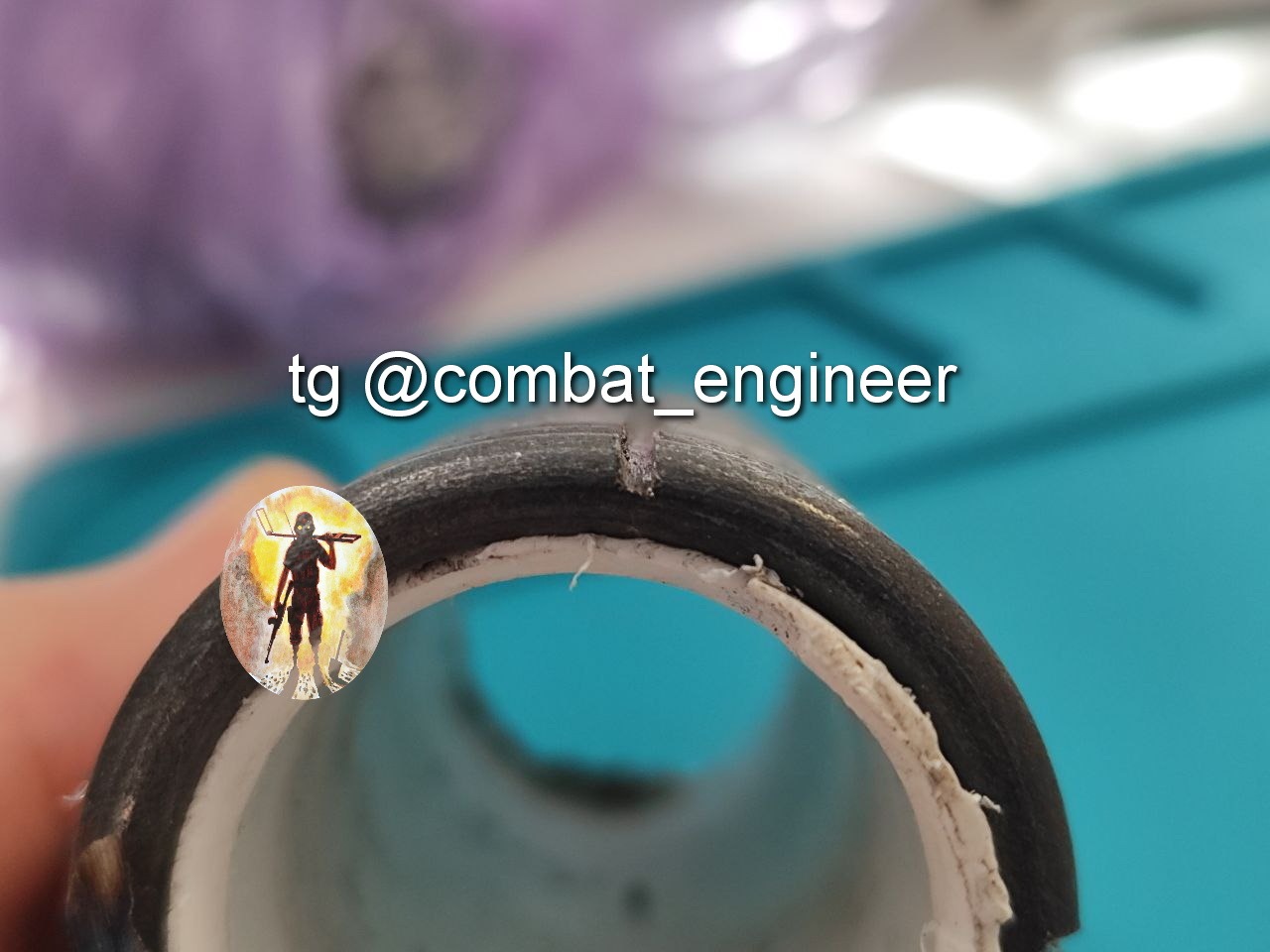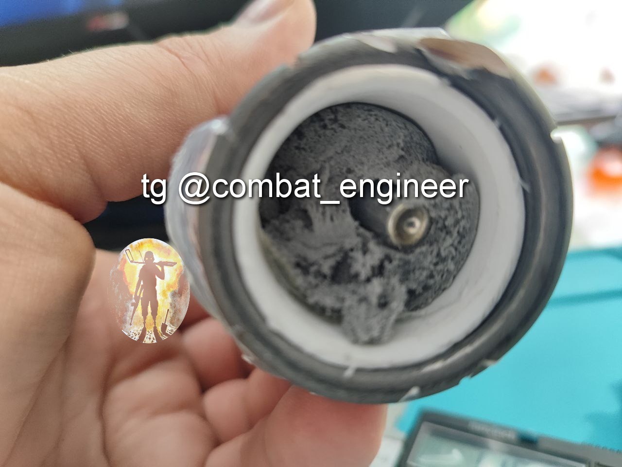 Основной заряд из ПВВ-7 помещен в пластиковую трубу, внутри заряда размещен ЭДП соединённый с электрической цепью разъемом (и что удивило соединение проводов на скрутке, но в термоусадочной трубке.