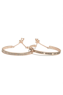 💰 $12.74 women Rose Gold-Tone Logo Bangle Set at Guess