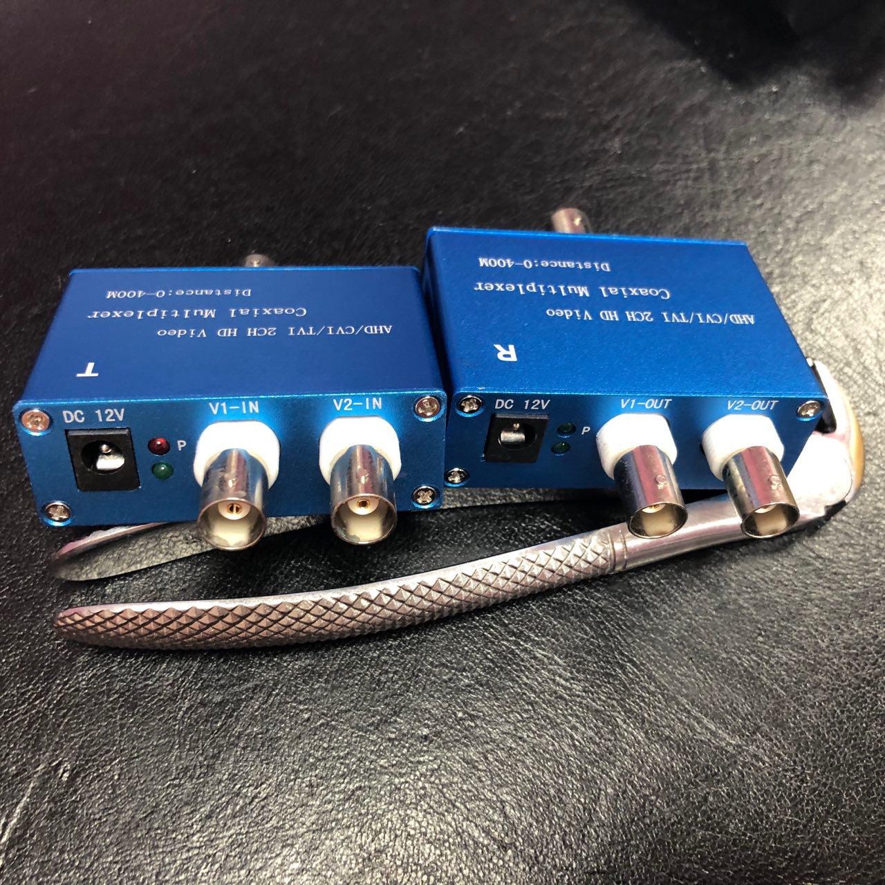 Уплотнитель видеосигнала AHD/TVI/CVI с разрешением до 1080р. Позволяет передавать видеосигнал с 2-х Full HD камер по одному коаксиальному кабелю на расстояние до 400 м. Комплект передатчик + приемник. Питание 12В обоих блоков. Рабочая температура -30°C - 50°C.