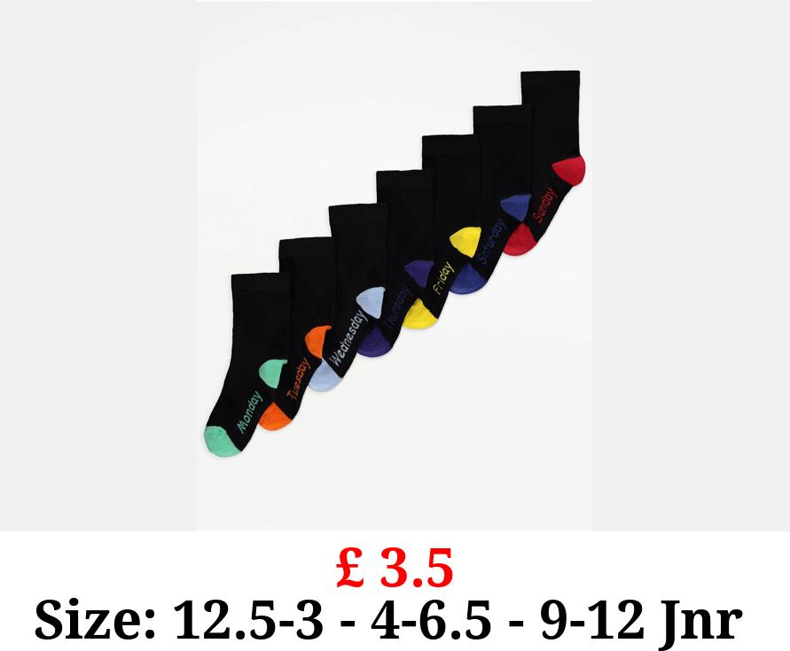 £ 3.5 Black Day of the Week Cotton Rich Ankle Socks 7 Pack