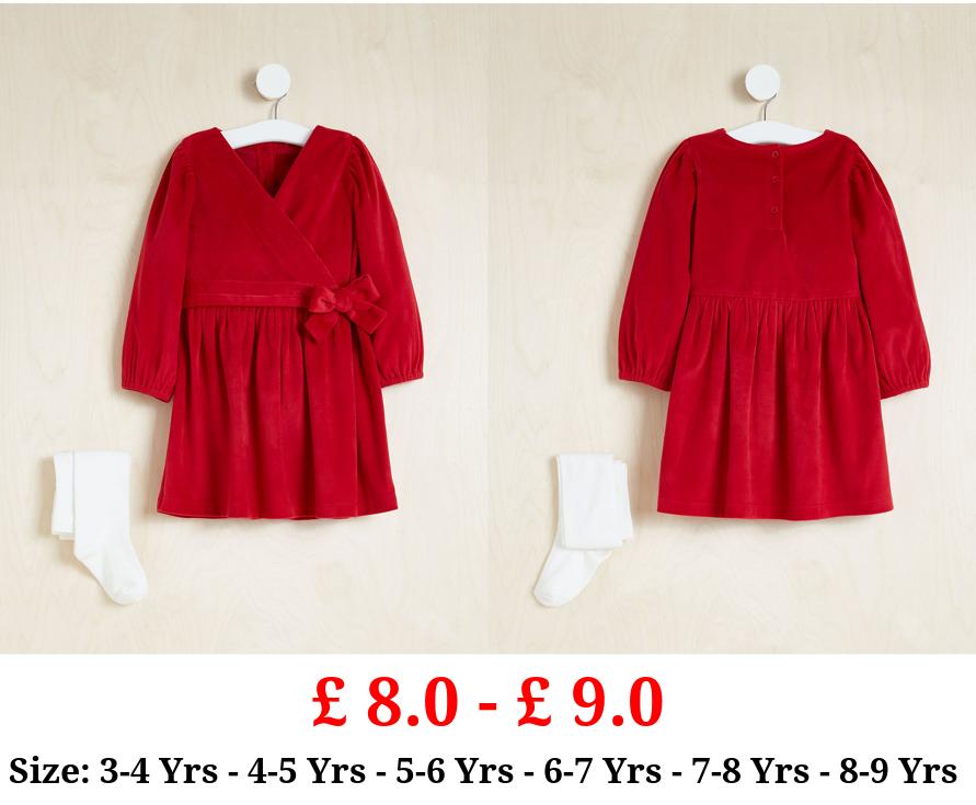 £ 8.0 - £ 9.0 Billie Faiers Red Velour Wrap Dress and Tights Outfit