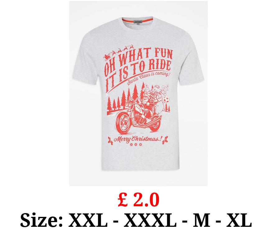 £ 2.0 Grey Santa Claus Motorbike Graphic T-Shirt