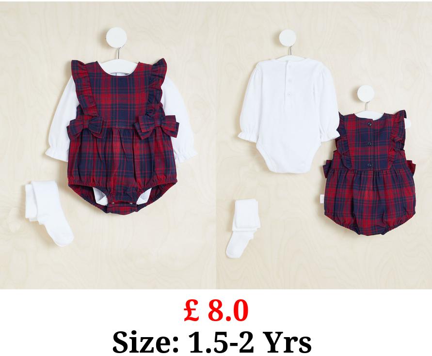 £ 8.0 Billie Faiers Checked Romper Bodysuit and Tights Outfit
