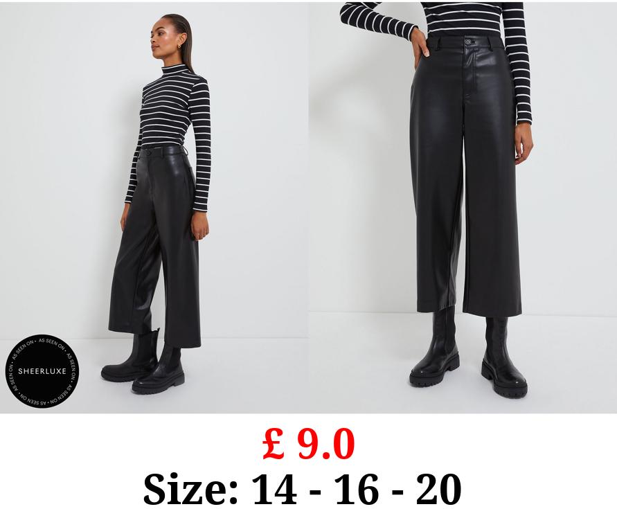 £ 9.0 Black Faux Leather Wide Leg Cropped Trousers