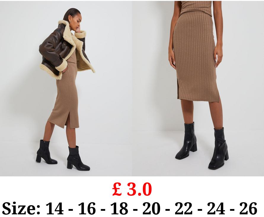 £ 10.0 Khaki Faux Leather Side Ruched Midi Skirt