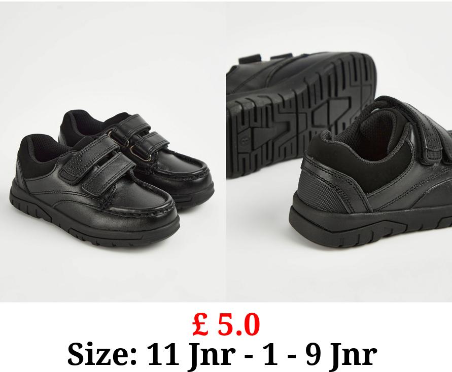 £ 5.0 Wide Fit Black Leather Moccasin School Shoes