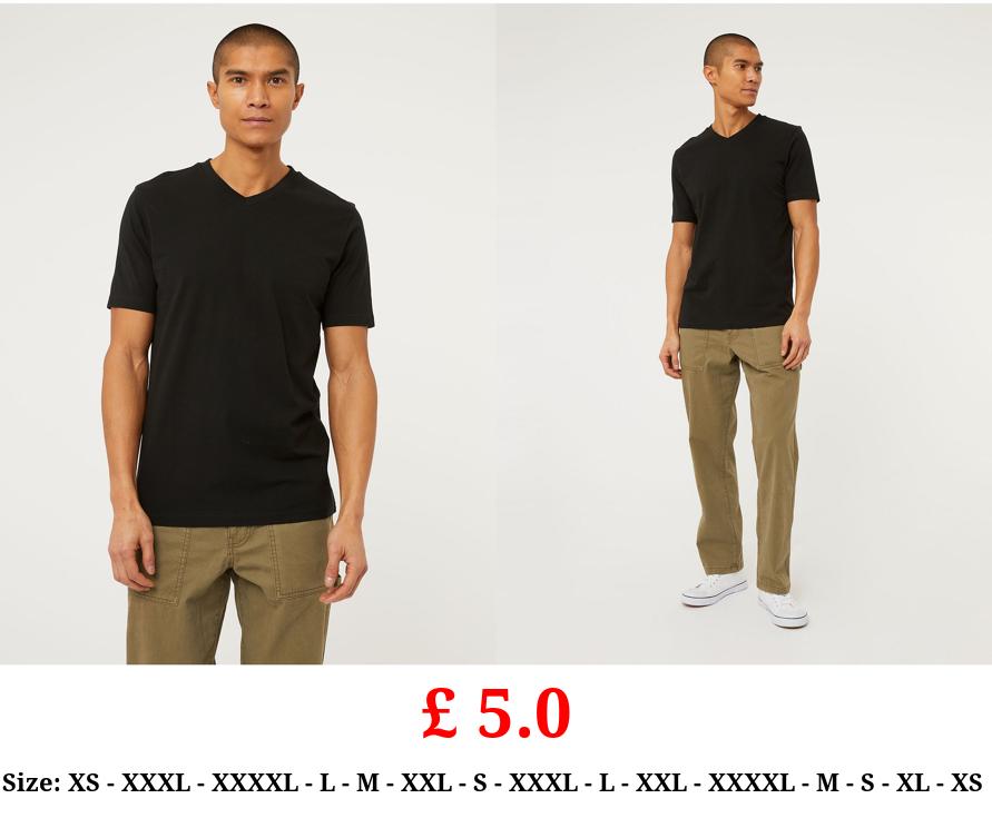 £ 5.0 Black Plain V-Neck T-Shirt