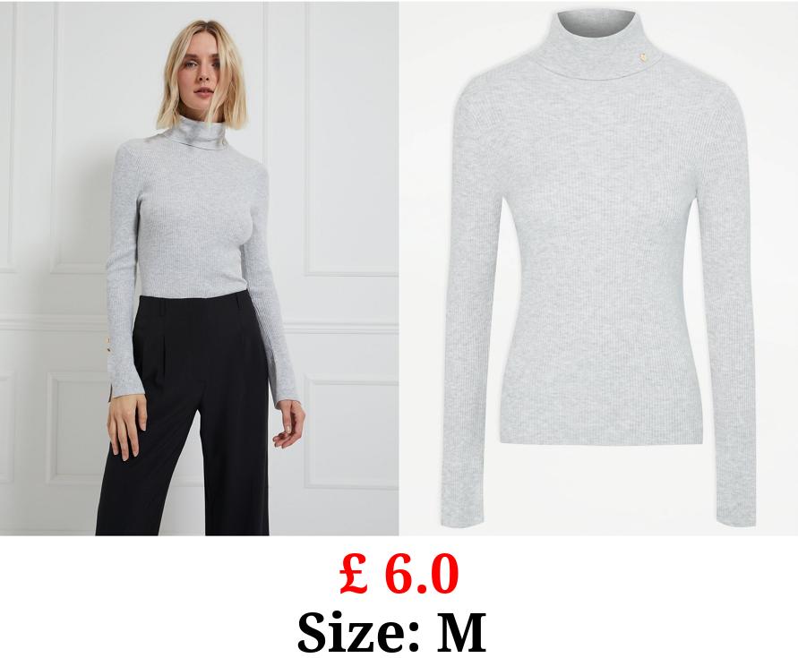 £ 6.0 Billie Faiers Grey Ribbed Roll Neck Jumper