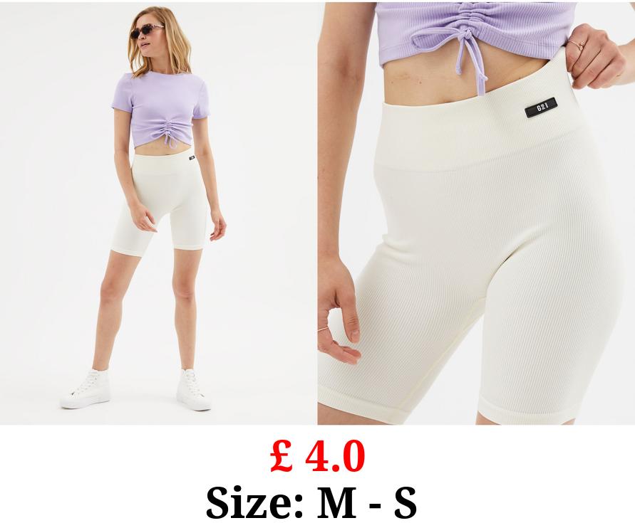 £ 4.0 G21 Cream Seamless Ribbed Cycling Shorts