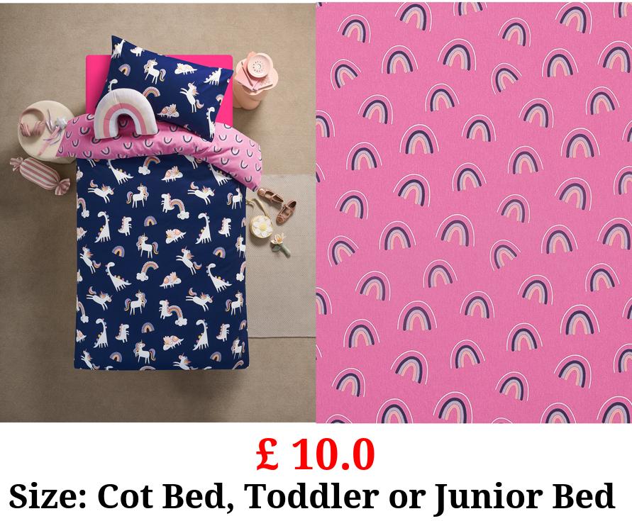 £ 10.0 Navy Unicorn Brushed Cotton Reversible Duvet Set