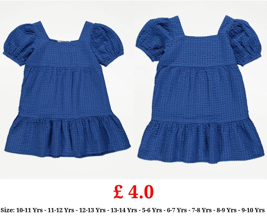 £ 4.0 Blue Textured Tiered Dress