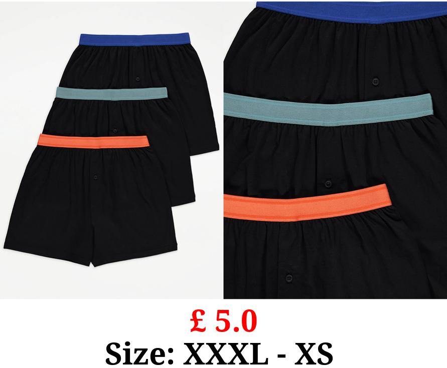£ 5.0 Black Contrast Colour Waist Loose Fit Boxers 3 Pack