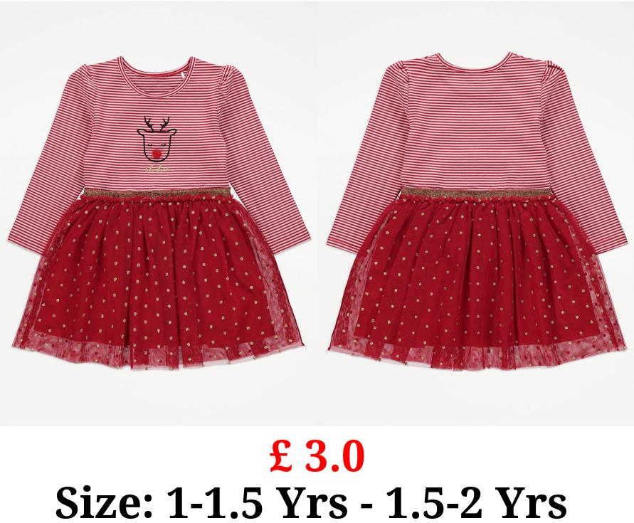 £ 3.0 Red Striped Reindeer Christmas Dress