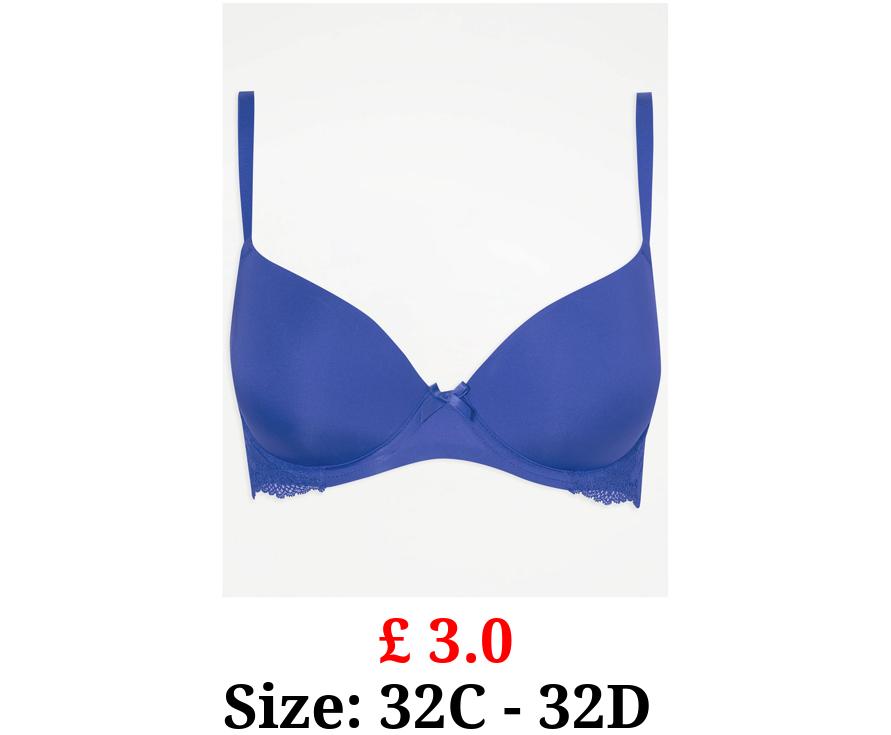 £ 3.0 Navy Lace Trim T-Shirt Bra