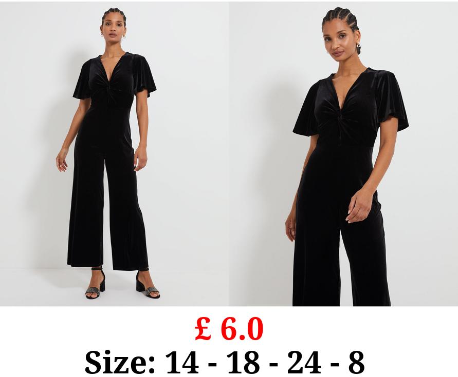£ 6.0 Black Angel Sleeve Velvet Jumpsuit