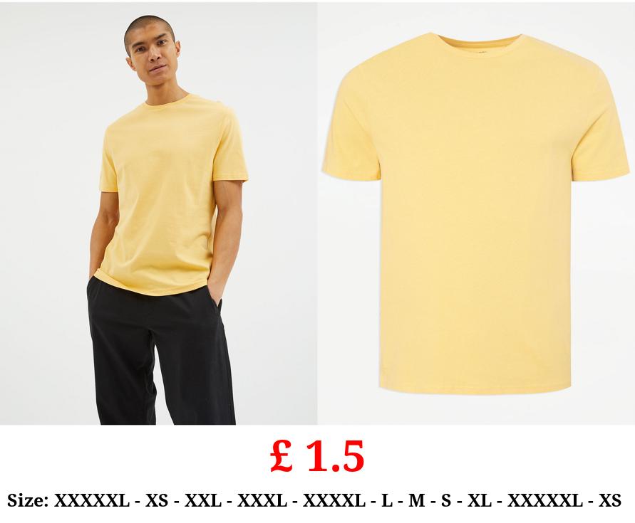 £ 1.5 Yellow Plain Crew Neck T-Shirt