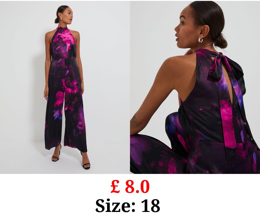 £ 8.0 Floral Satin Tie Back Jumpsuit