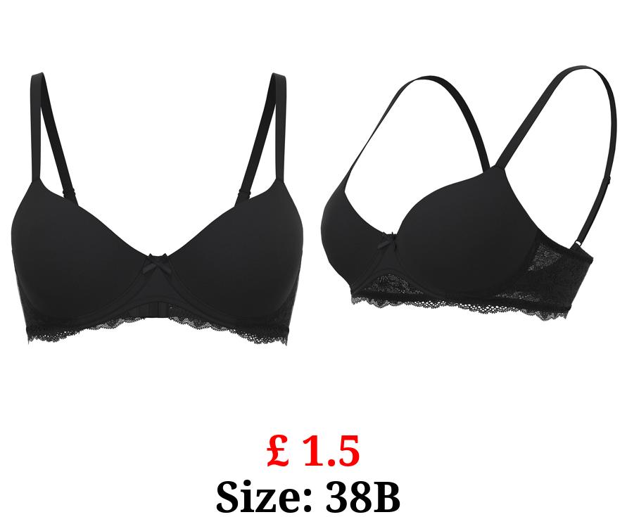 £ 1.5 Black Lace Trim T-Shirt Bra
