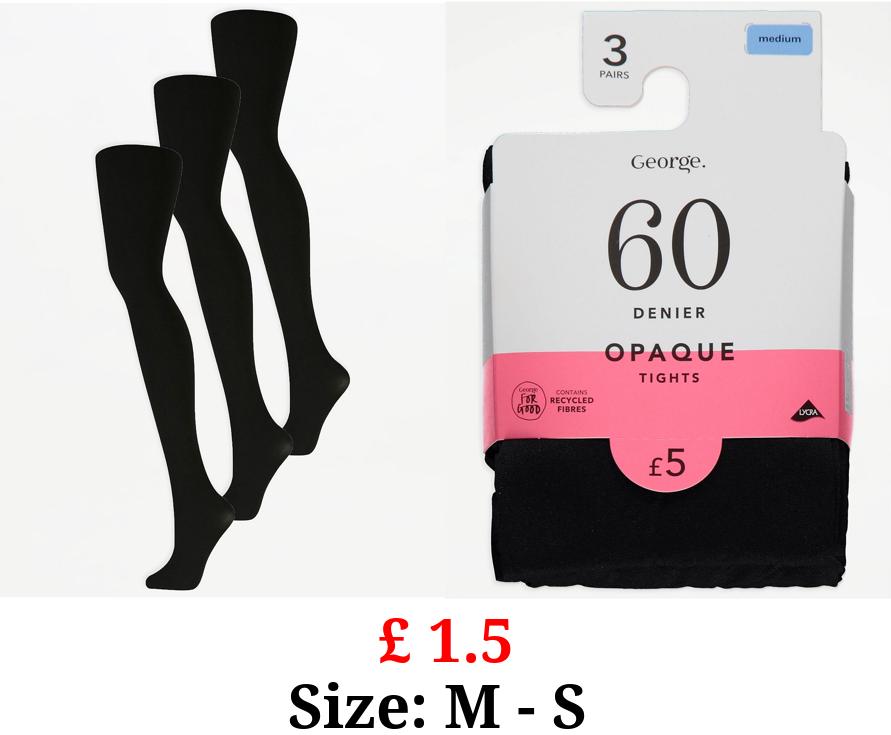 £ 1.5 Black 60 Denier Opaque Tights 3 Pack