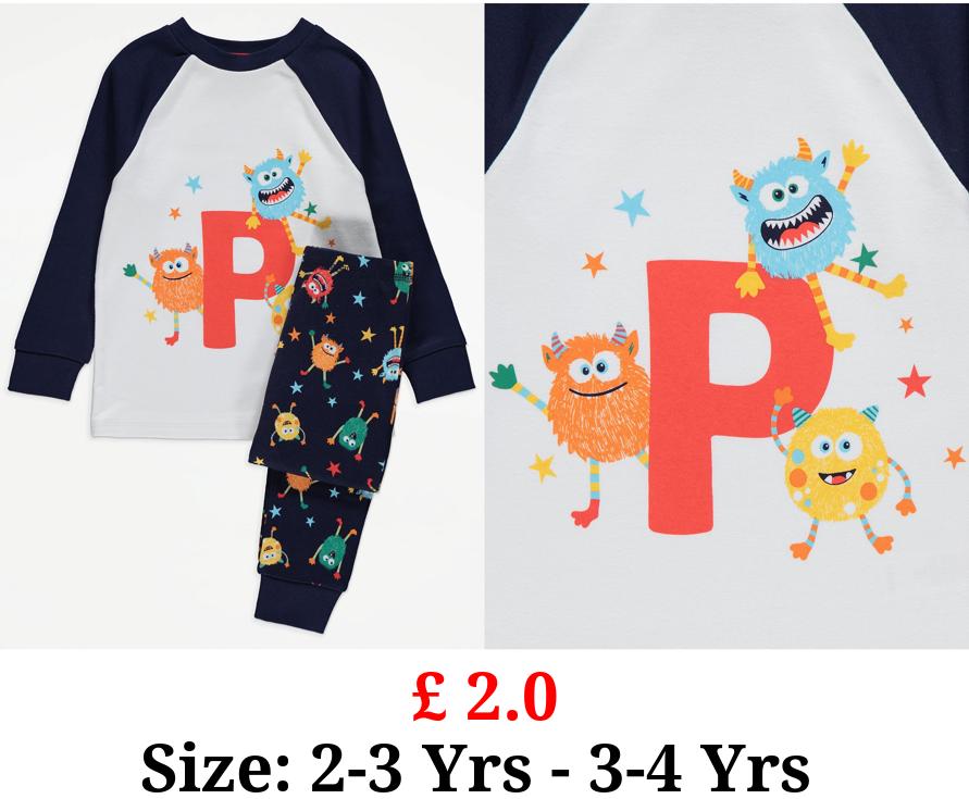 £ 2.0 Navy Monster Letter P Alphabet Pyjamas
