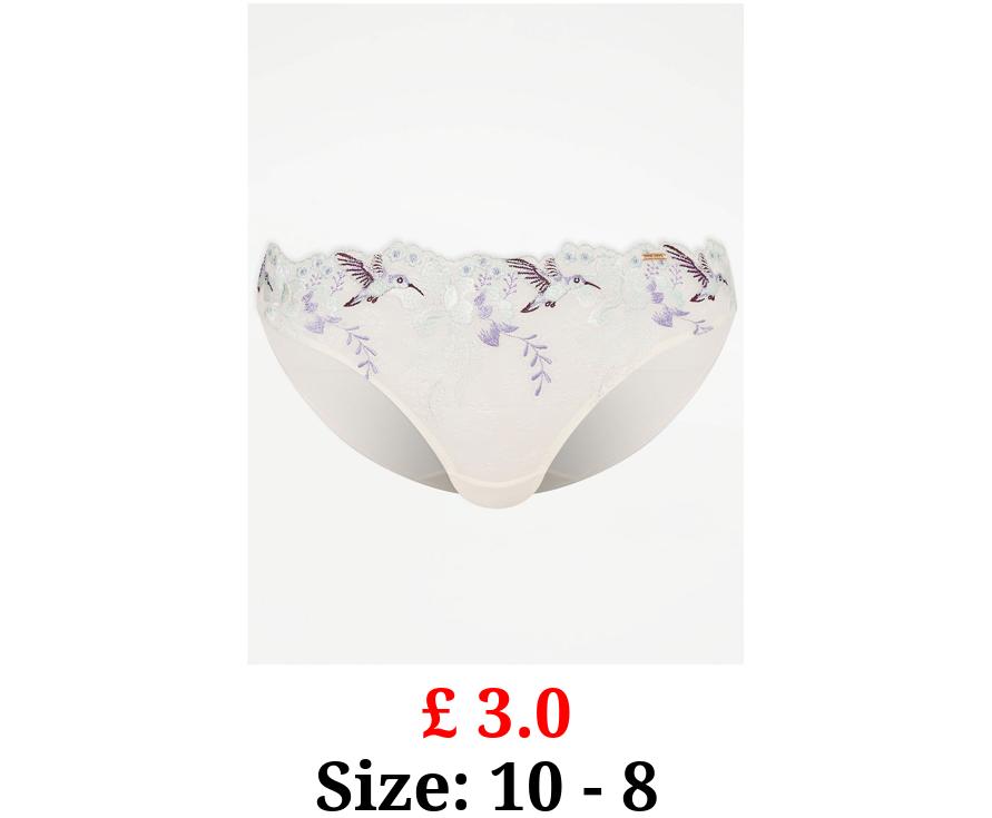 £ 3.0 Entice White Hummingbird Embroidered Mini Knickers