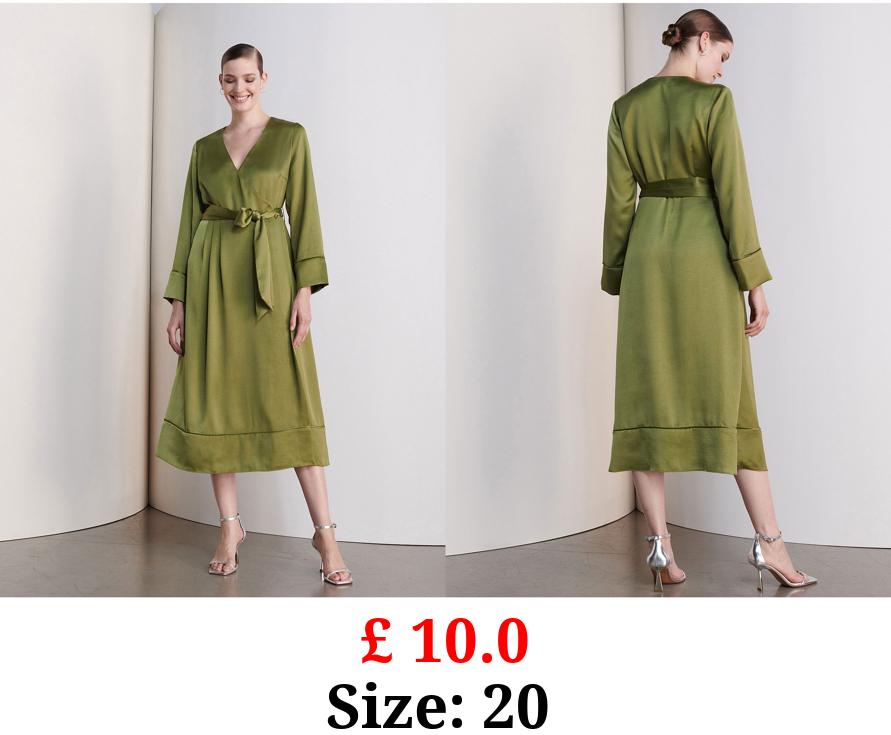 £ 10.0 Studio Edit Green Satin Wrap Midi Dress