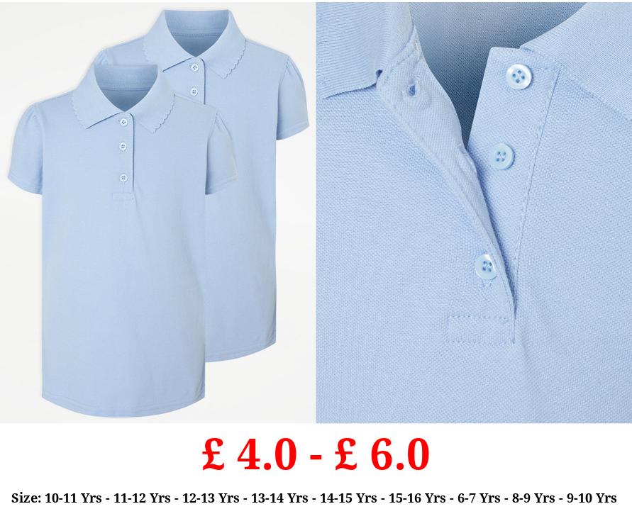 £ 4.0 - £ 6.0 Girls Light Blue Scallop Short Sleeve School Polo Shirts 2 Pack
