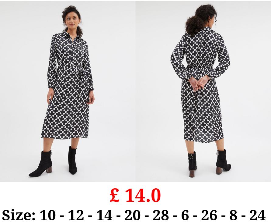 £ 14.0 Black Spot Satin Shirt Midi Dress