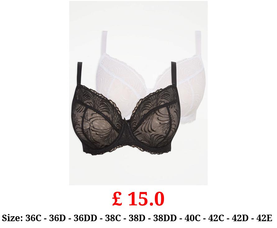 £ 15.0 Black Embroidered Non-Padded Bra 2 Pack