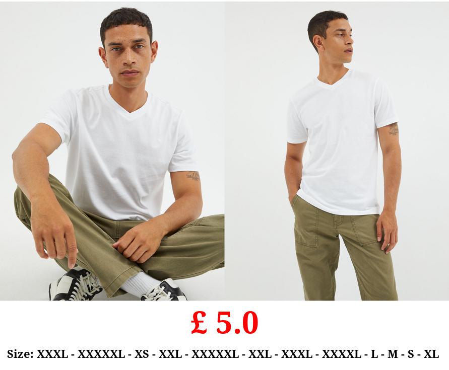 £ 5.0 White Plain V-Neck T-Shirt