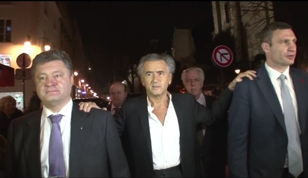 Одною з малорозпіарених фігур подій в Україні в 2014 році був французький філософ Бернар-Анрі Леві. Це раритетне фото немов натякає, розташувавши руки на плечах Етінзона і Вальцмана, хто був одним з головних ідеологів “Революції гідності”