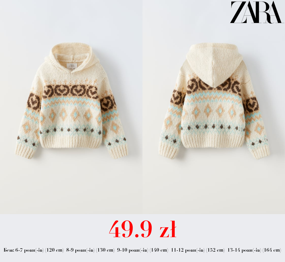 49.9 zł ЖАКАРДОВИЙ СВЕТР ІЗ КАПЮШОНОМ