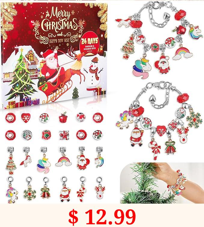 $ 12.99 Christmas Advent Calendar 2023, 24 Days Xmas Countdown Calendar for Kids, Christmas Charm Bracelet Making Kit, Surprise DIY Jewerly Stocking Stuffer Gifts Idea for Girls Age 5-18