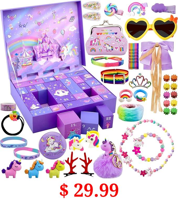 $ 29.99 Advent Calendar 2023 Girls, Christmas Countdown Calendar, 24 Days Xmas Count Down Jewelry Gifts for kids Toddlers, Including Hair Accessories, Jewelry, Hair Clips, Bracelets, Ring, Stickers, Coin Purse