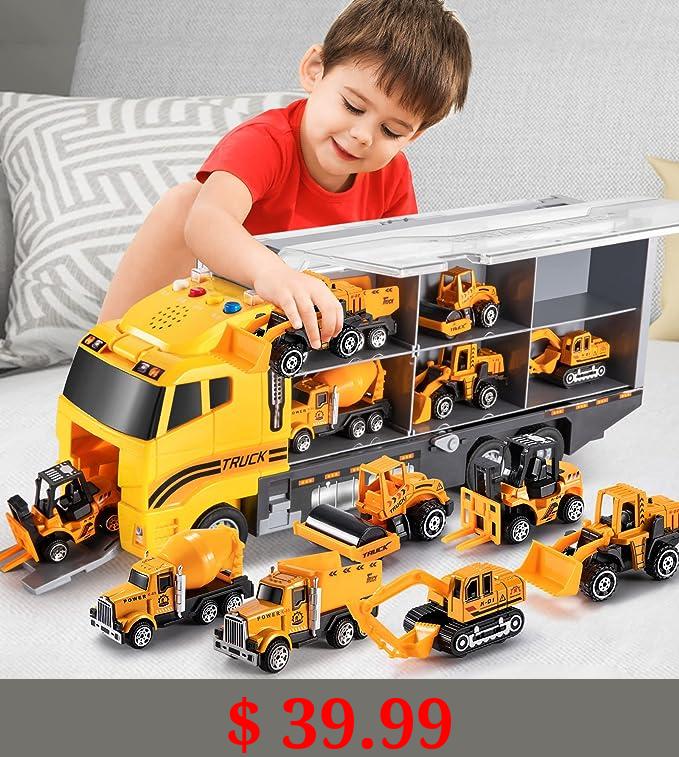 $ 39.99 TEMI Toddler Toys for 3 4 5 6 Years Old Boys, Die-cast Construction Toys Car Carrier Vehicle Toy Set w/Play Mat, Truck Alloy Metal Car Toys for Age 3-9 Toddlers Kids Boys & Girls