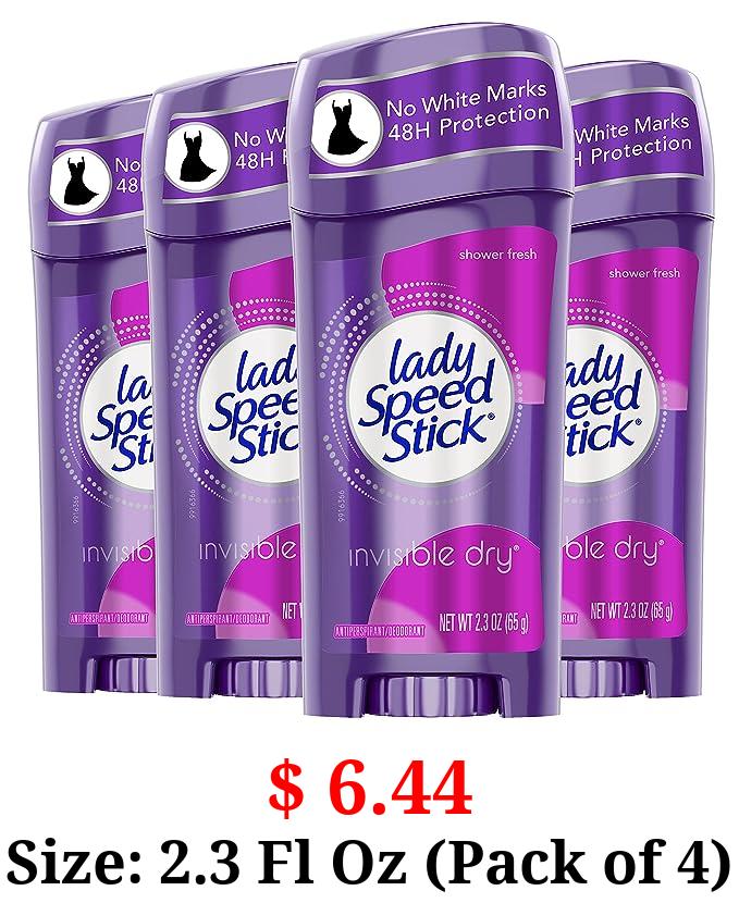 $ 6.44 Size: 2.3 Fl Oz (Pack of 4) Lady Speed Stick Invisible Dry Antiperspirant Deodorant, Shower Fresh, 2.3oz, 4 Pack