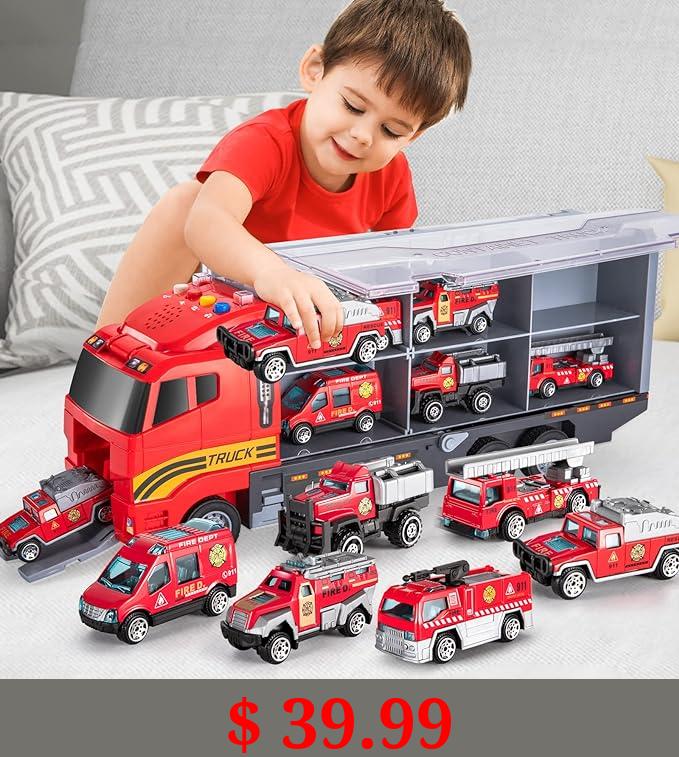 $ 39.99 TEMI Toddler Toys for 3 4 5 6 Years Old Boys, Die-cast, Alloy Metal Emergency Fire Rescue Vehicle Transport Car / Truck Toys Set w/Play Mat for Age 3-9 Toddlers Kids Boys & Girls