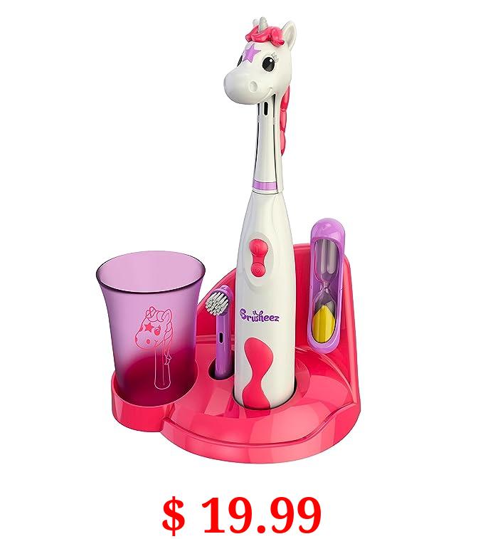 $ 19.99 Brusheez® Kids’ Electric Toothbrush Set - Safe & Effective for Ages 3+ - Parent Tested & Approved with Gentle Bristles, 2 Brush Heads, Rinse Cup, 2-Minute Timer, & Storage Base (Sparkle The Unicorn)