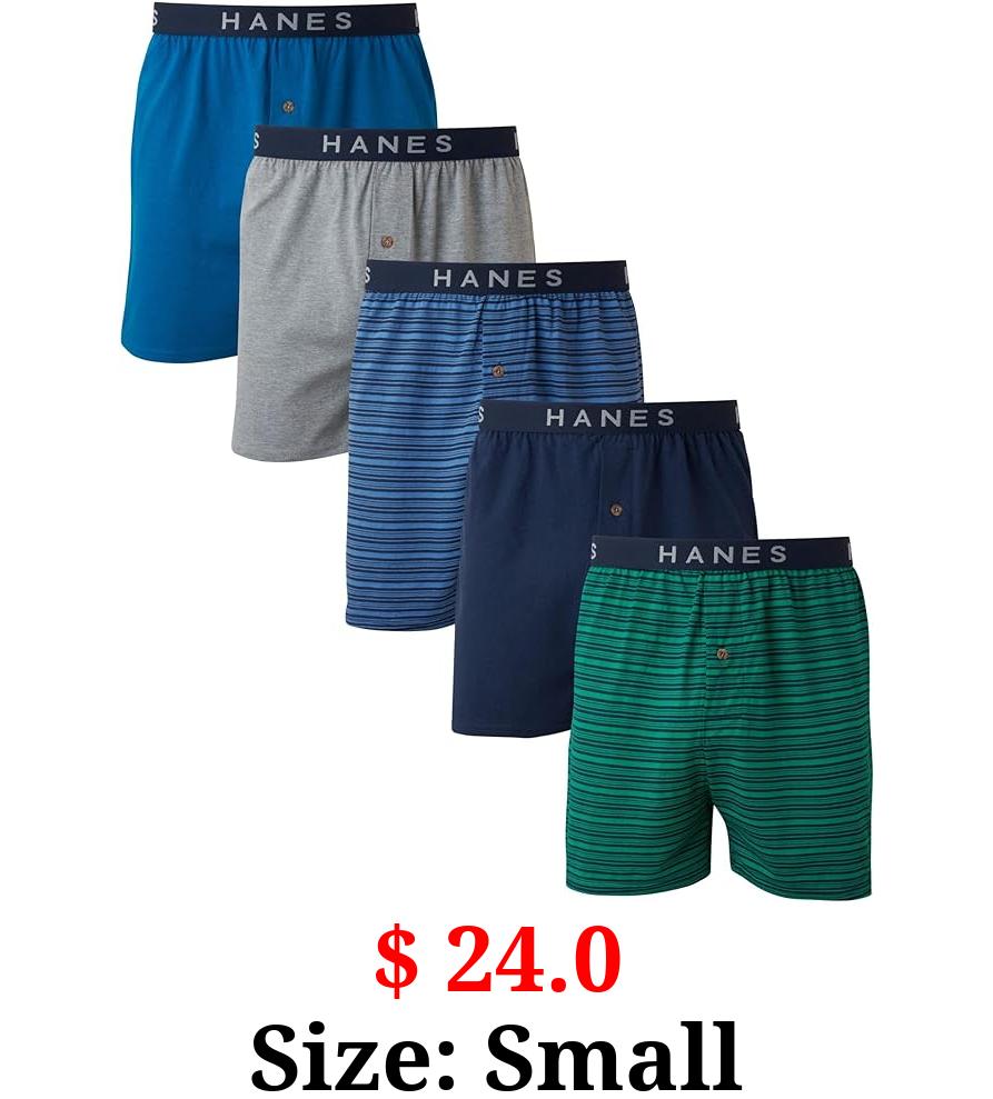 $ 24.0 Size: Small Hanes Men's 5-Pack Ultimate Dyed Exposed Knit Boxer with ComfortFlex Waistband-Assorted Colors