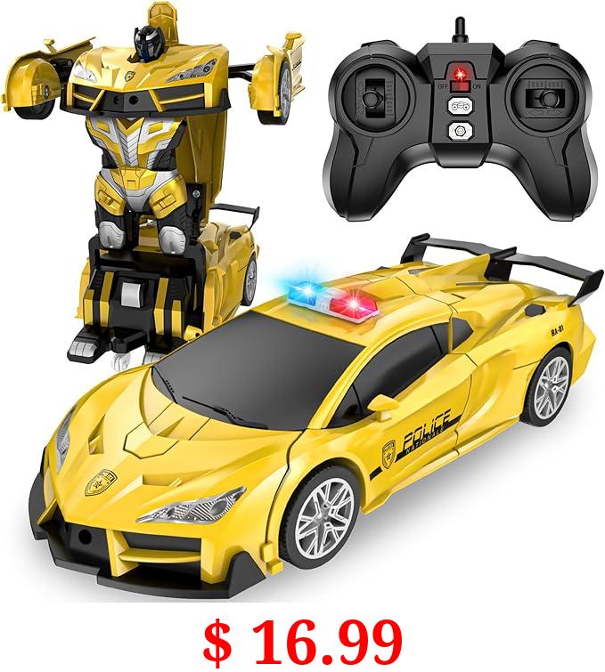 $ 16.99 LNNKINE Remote Control Car, Transform Robot RC Cars, 2.4Ghz Transforming Police Car Toy with LED Light, One-Button Deformation and 360° Rotating Drifting, Toys for 5+ Year Old Boys/Girls