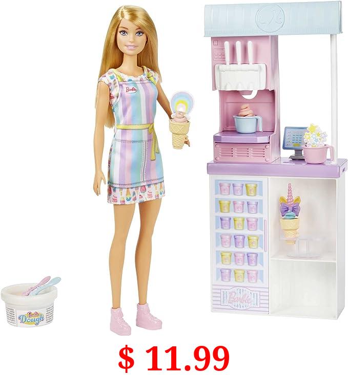 $ 11.99 Barbie Careers Doll & Accessories, Ice Cream Shop Playset with Blonde Doll, Ice Cream Machine, Molds, Dough & More
