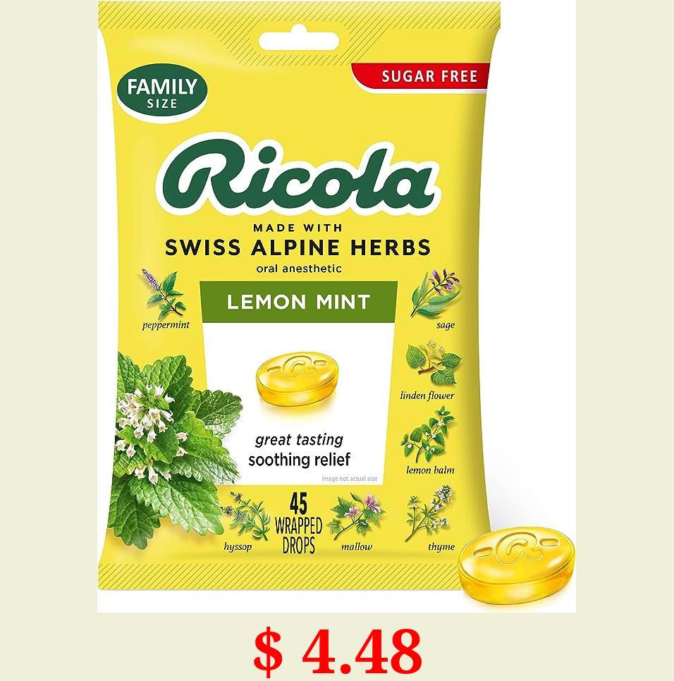 $ 4.48 Ricola Big Bag Sugar Free Cough Drops Drops 2245, Lemon, lemon mint, 45 Count, pack of 1