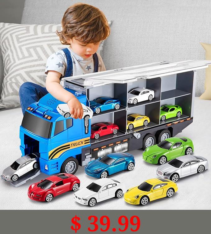 $ 39.99 TEMI Transport Cars Carrier Set Toys w/Play Mat, Die-cast Vehicles Truck Alloy Metal Race Model Car Toys for Toddler Age 3-9 Kids Boys & Girls