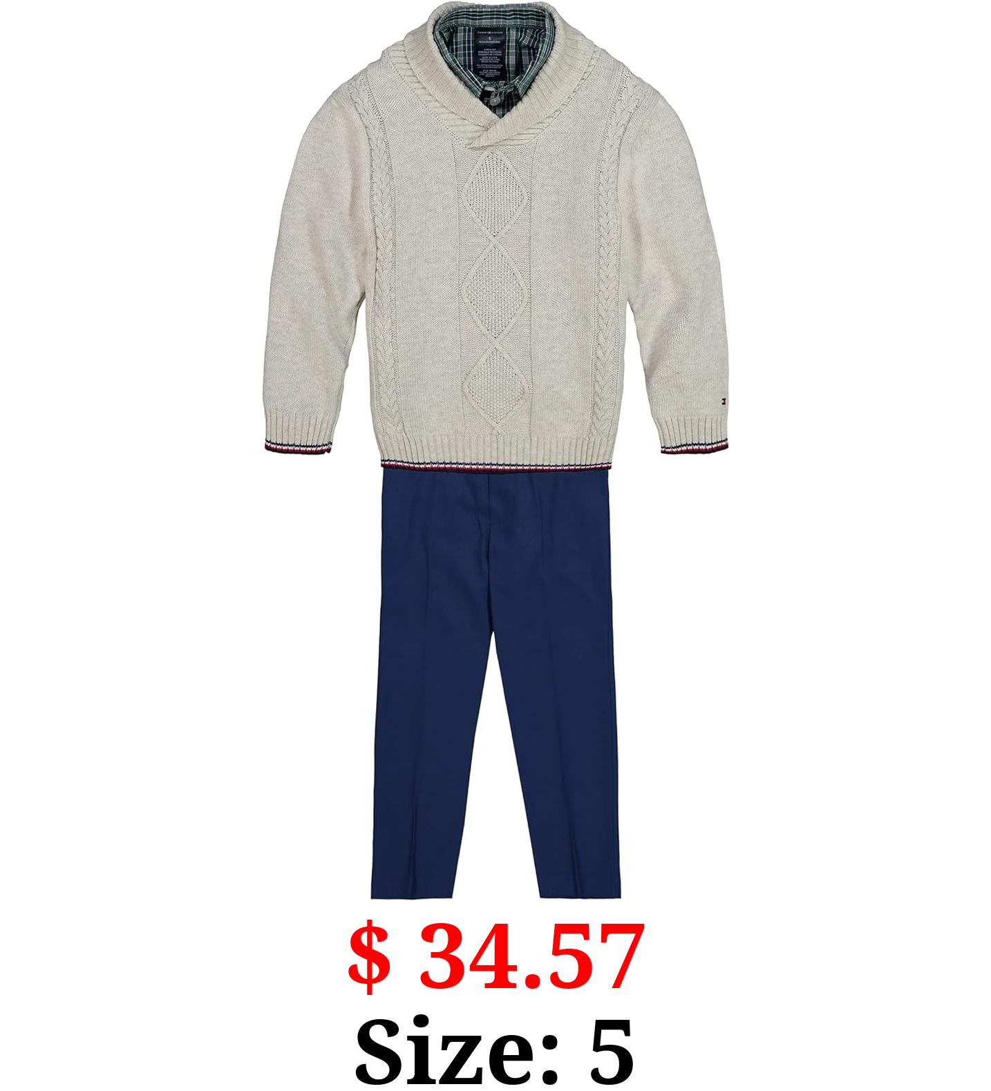 $ 34.57 Size: 5 Tommy Hilfiger Boys' 3-Piece Pullover Sweater, Long Sleeve Dress Shirt, and Pants Set