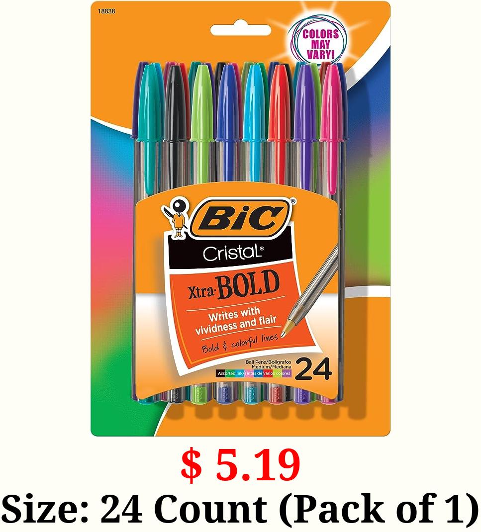 $ 5.19 Size: 24 Count (Pack of 1) BIC Cristal Xtra Bold Ballpoint Pens, Bold Point (1.6mm) For Vivid And Dramatic Lines, Assorted Colors, 24-Count Pack