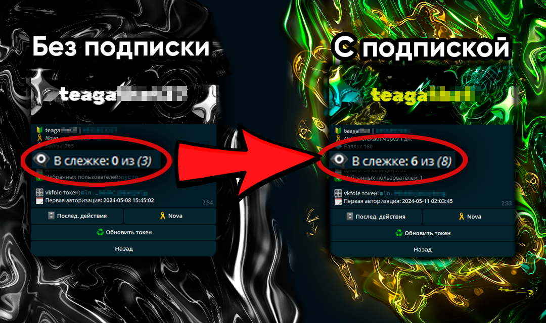 С подпиской🎗Nova ты сможешь добавить несколько аккаунтов вк.