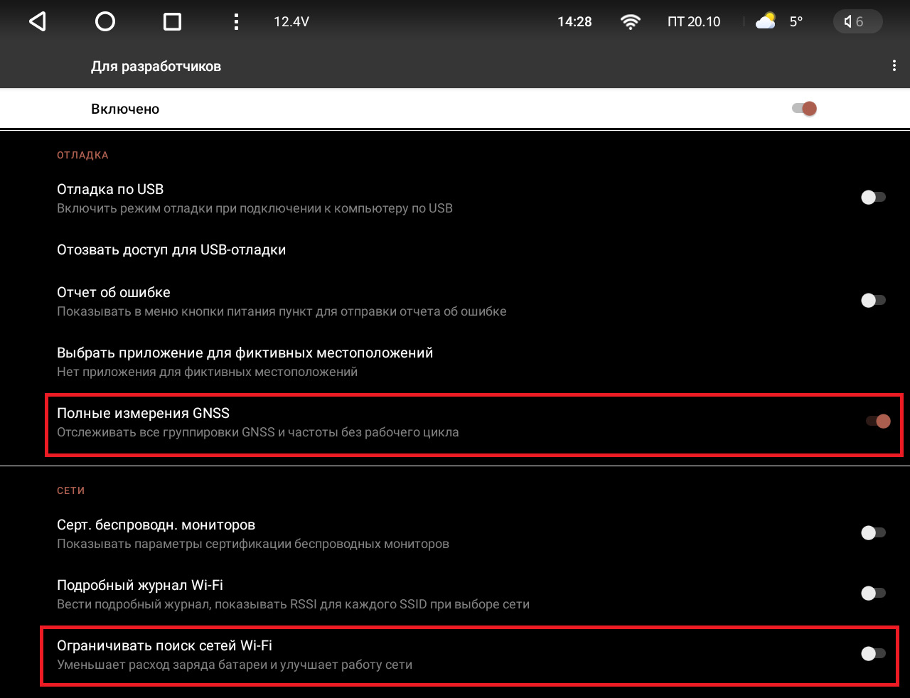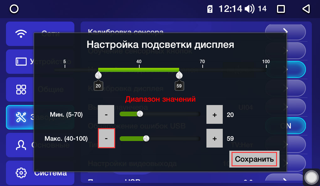 водских настроек