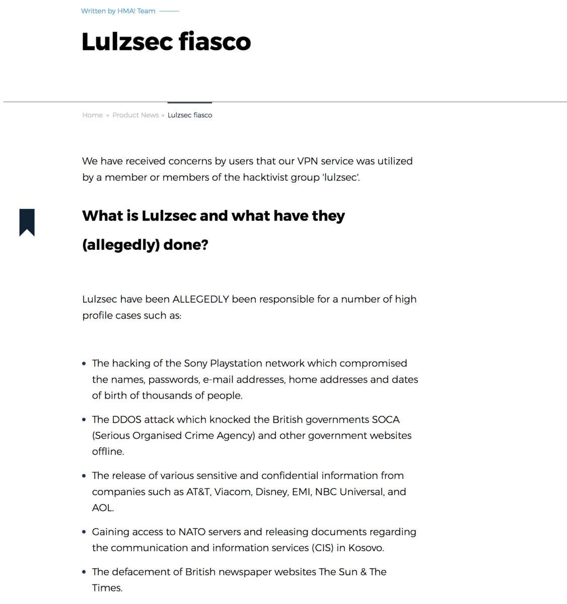 В 2011 году этот провайдер выдал властям США одного из участников группировки LulzSec — Коди Эндрю Кретзингера. Мало того, администраторы еще написали длинный пост в свое оправдание. Выдача логов якобы была обоснованной. Но на месте этого человека мог быть любой журналист или же правозащитник в тоталитарной стране.