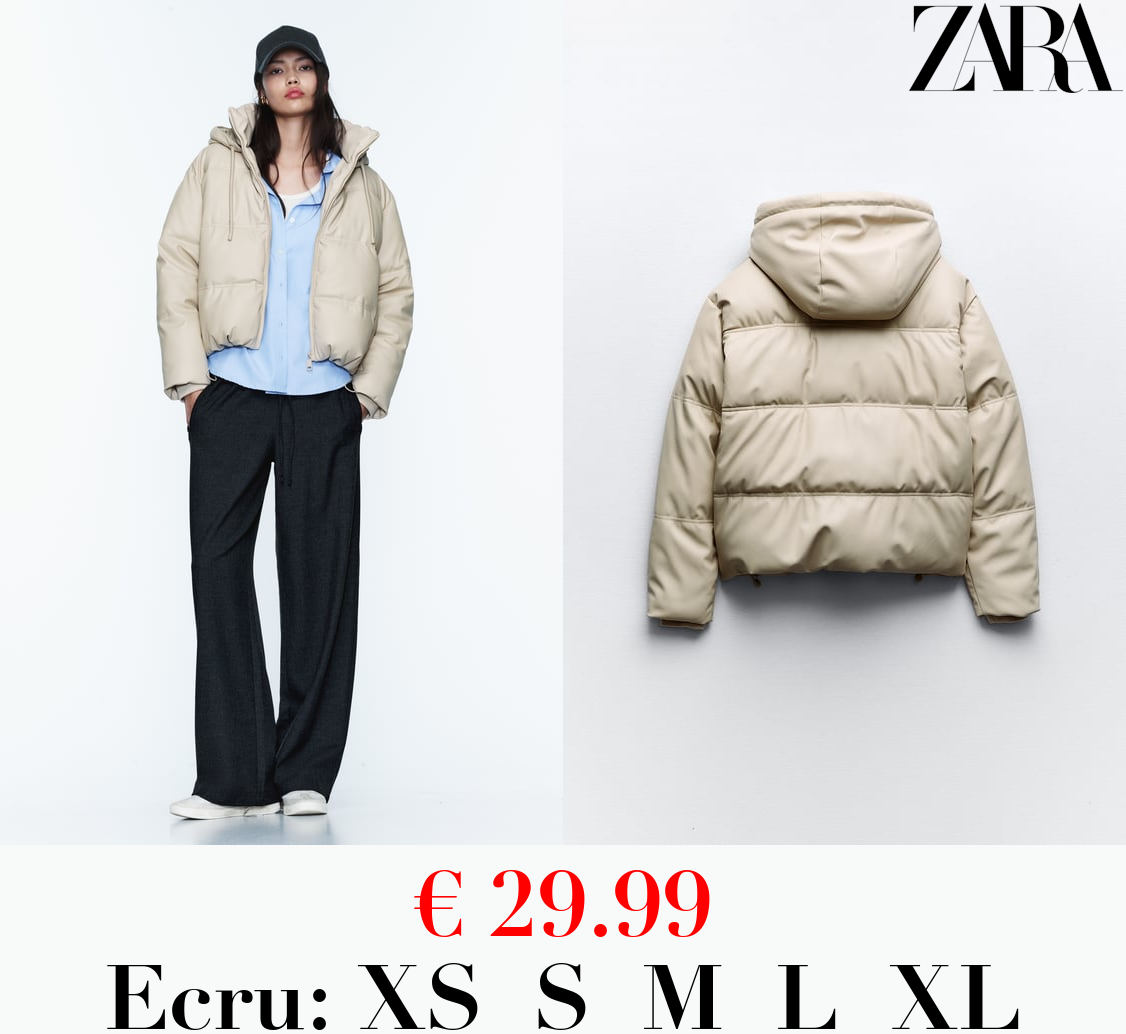 € 29.99 WIND PROTECTION FAUX LEATHER CROPPED PUFFER ANORAK