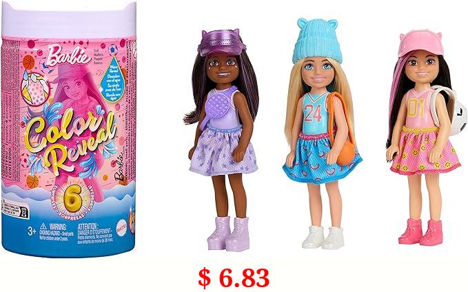 $ 6.83 Barbie Color Reveal Dolls Stocking Stuffer, Chelsea Small Doll with 6 Unboxing Surprises Including Color Change, Sporty Series